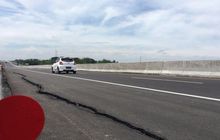 Retakan aspal mencapai panjang kurang lebih 20 meter ditemukan di sisi selatan ruas Tol Pemalang-Batang kilometer 321