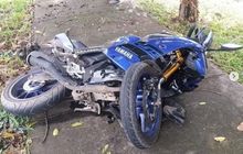 Yamaha R15 V3 Terkapar, Kondisi Upside Down Melengkung Bikin Ngilu