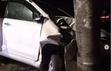 Toyota Avanza ringsek depan, kecelakaan tunggal di waktu Subuh, hajar tiang sampai satu pria pingsan