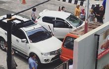 Mitsubishi Pajero Sport dan Datsun Go menjadi korban sosor angkot yang mengalami rem blong di dalam SPBU Pamularsih