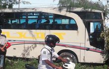 Bus Ringsek, Sopir Banting Setir ke Kiri, Berhenti Menancap Pohon