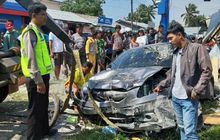 Honda Brio enggak laper tapi pengemudi ngantuk hajar dua gerobak nasi goreng, bodi hancur gerobak juga ikutan remuk