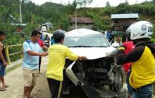 Avanza Ditumpangi Enam Polisi Hantam Jembatan, Atap Ringsek, Dua Patah Tulang