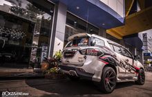 Isuzu MU-X satu ini diubah menjadi beraliran racing+ berkat deacl stiker serta pelek ukuran besar dengan ban tipis