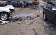 Empat mobil mengalami hancur parah sampai berceceran di jalan tol BSD arah Pondok Aren karena terlibat kecelakaan beruntun