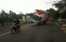 Truk Boks Bodi 'Sobek' Nyender Pohon, Aksi Truk Oleng Gagal Jadi Fatal