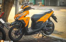 Honda Vario 125 berkelir kuning tampil hedon di sektor kepala dan kaki-kaki, komponen aftermarket banyak yang menempel