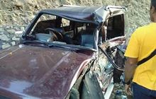 Toyota Kijang Bonyok Bodi Kiri, Dihantam Bus Rem Blong, Nyangkut di Tumpukan Material