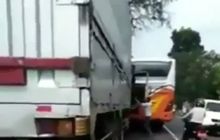 Video ketegangan antara sopir bus dan sopir truk vial di sosial media. Diduga karena nggak saling kasih jalan saat sedang salip menyalip