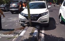 Honda HR-V Nyangkut Pembatas Jalan, Wajah Cium Pohon, Ban Meletus Setir Tak Terkendali