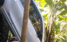 Toyota Avanza Terjungkal, Bumper Nyangkut Tembok, Satroni Kebun Pisang