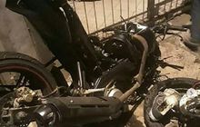 Yamaha V-Ixon rusak parah setelah terlibat kecelakaan dengan sebuah Isuzu Elf. Sokbreker sampai ban depan pisah dari rangka