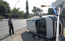 Chevrolet Spin terguling di bahu jalan, bodi bonyok tertimpa tiang lampu, Honda Scoopy kena hajar di depan rumah makan