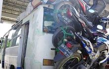 Fenomenan libur lebaran 2019, Yamaha Byson, Honda Sonic 150R dan Revo gelantungan di pantat bus, polisi kasih izin