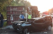 Kecelakaan beruntun terjadi di rus tol Cipularang, Jabar, Toyota Agya, Rush, Xenia, Hiace, Carry pikap, dan bus dihempaskan ulah truk kontainer