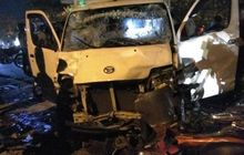 Daihatsu Gran Max remuk setelah terlibat kecelakaan dengan tujuh anggota kepolisian. Kecelakaan diduga karena mobil mendadak oleng