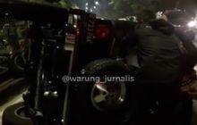 Sebuah Jeep Rubicon terlentang di sebuah jalan raya setelah menabrak separator pembatas jalan. Ternyata aksi mengejar jambret berakhir gagal