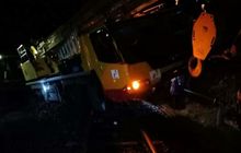 Truk Crane Mogok di Atas Rel, Pantat Tertinggal Diterjang Lokomotif, Terseret 150 Meter
