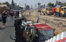 Underpass Kentungan Yogyakarta Amblas, Land Rover Milik Turis Australia dan Truk Terguling ke Lubang