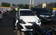 Mazda2 diterjang Honda Revo, fender kanan teriris mulai bumper depan, spontan rem mendadak, pengendara Yamaha RX-King dan V-Ixion ikut gubrak