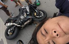 Peristiwa unik terjadi saat sebuah Kawasaki Z1000 terlibat kecelakaan dengan Toyota Hilux. Si boncenger masih sempat selfie di atap mobil