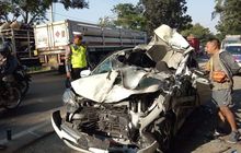 Toyota Agya berantakan, wajah ringsek dan sobek, atap terkelupas, tiga orang tewas usai hajar truk parkir di Probolinggo