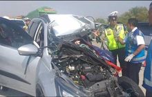 Toyota Rush teriris di kecepatan 140 Km/Jam, bodi kiri 'habis' menerjang pantat truk box di tol Surabaya-Mojokerto