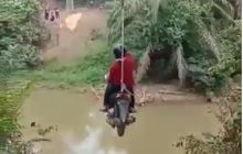 Honda Vario 125 jadi motor terbang, bukan pakai teknologi canggih bergantung ke seutas tali menyeberangi sungai