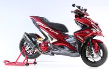 Yamaha Aerox 155 berkelir merah ini merupakan pemenang kelas Master Aerox pada ajang Customaxi seri Surabaya (2/2/18).