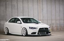 Begini kalau Mitsubishi Lancer Ralliart dirombak dengan gaya simpel. Main warna putih, mobil ini pakai gaya clean look