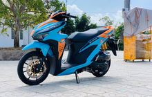 Honda Vario 150 digebyur oli di sekujur bodi dan berubah jadi biru beraksen oranye dengan tempelan part mewah
