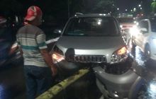 Toyota Rush Ringsek, Bumper 'Makan' Pembatas Jalan Hingga Pecah