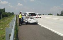 Mitsubishi L300 terpental hingga terguling di tengah tol Kertosono-Nganjuk usai terjang Suzuki Ertiga hingga ringsek