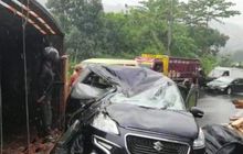 Suzuki Ertiga Nyaris Gepeng, Balok Kayu Tembus Kabin, Ulah Truk Kelebihan Muatan