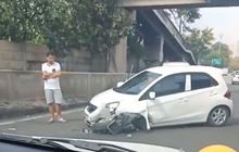 Honda Brio Remuk di Tol Cikupa, Sokbreker Hingga Roda Amburadul di Aspal