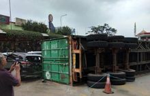 Kijang Innova, Avanza, Rush dan Volvo Ringsek, Diterjang Truk Terguling di Rest Area Tol Cipularang