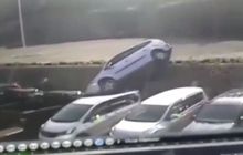 Honda Stream meluncur dari parkiran atas, terjun menimpa Honda Freed hingga atap ringsek, peristiwa terekam CCTV