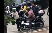 Pengendara Yamaha NMAX arogan mendadak takberkutik ketika dihadang pengojek online. Setelah jaket dibuka ternyata polisi nyamar ojek online