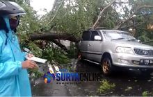 Toyota Kijang LGX ringsek setelah atap amblek tertimpa pohon tumbang di Tulungagung saat hujan deras
