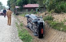 Toyota Kijang Innova yang ditumpangi Kepala Dinas Pencatatan Sipil Simeulue terguling ke parit, diawali ban bocor dan bergelimpang