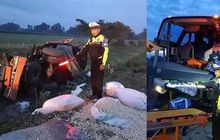 Bus pariwisata berisi 45 pelajar terjang truk hingga amburadul di tol Madiun-Ngawi saat melaju 70 km/jam, dua tewas tergencet bodi