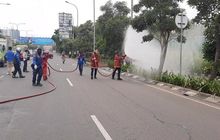 Pemadam Kebakaran melakukan penyemprotan di sejumlah jalan Protokol kota Bekasi, semprotkan disinfektan cegah virus Corona