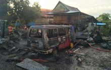 Suzuki Futura dilalap api bersama pompa pertamini, pemilik ikut tersambar saat sedot bensin kondisi mesin menyala