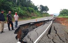 Jalur lingkar timur Jatigede, kabupaten Sumedang ambles di lima titik, aspal turun hingga 60 sentimeter