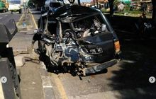 Isuzu Panther mendadak terkoyak hingga bodi belakang teriris dan atap terbelah usai diterjang truk di jalur pantura, Semarang-Kudus, kabupaten Demak