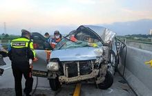 Daihatsu Gran Max hancur terbelah hingga atap terkelupas usai terjang bak truk gandeng di tol Madiun-Nganjuk