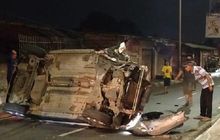 Datsun Cross Jungkir Balik, Terjang Beton Flyover Cipondoh, Roda Patah