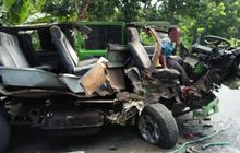Isuzu Elf pontang-panting usai pecah ban, hajar truk dari arah berlawanan, bodi dan atap terbelah dan terkelupas