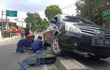 Nissan Grand Livina Didongkrak Pemadam, 40 Menit Baru Lepas Pembatas