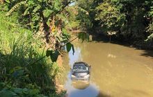 Daihatsu Gran Max gagal menanjak di kabupaten Enrekang hingga meluncur mundur dan terjun berendam di sungai